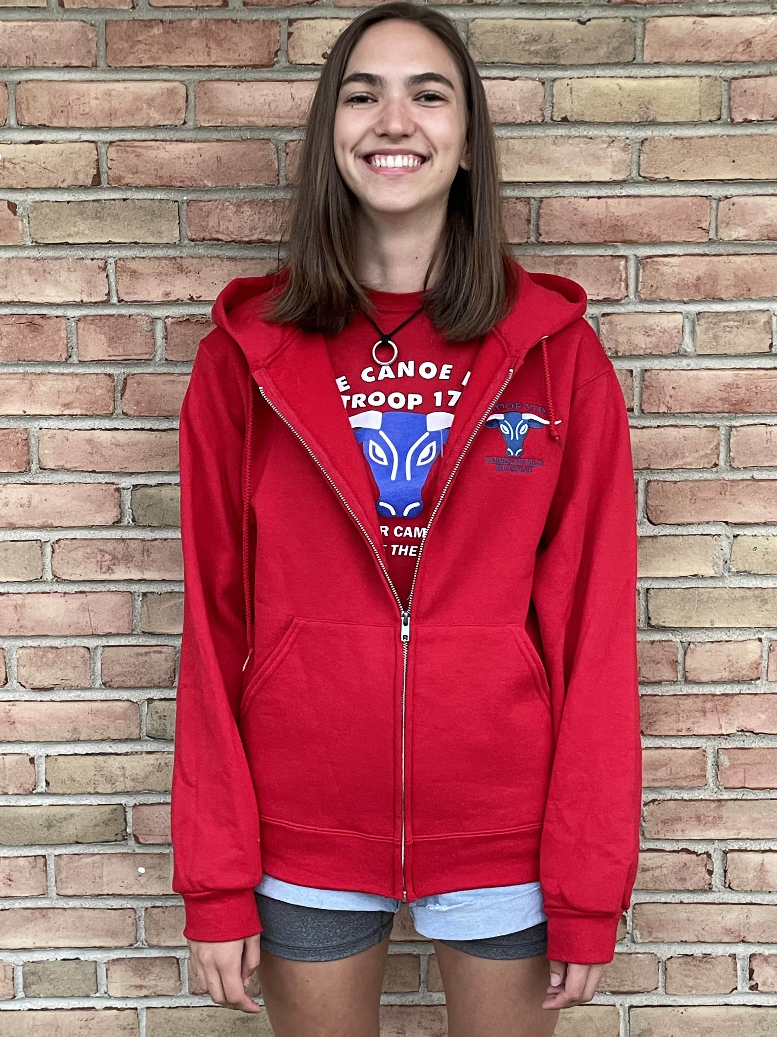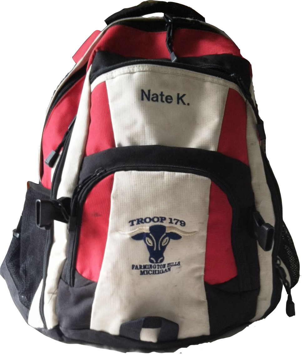 | TROOP BACKPACKS: The day bags are perfect for camping to carry your essentials with you throughout the day. They are red and white and have served well (I'm still using mine after seven years now. They come personalized with your name on it. COST: $48.50. |  |
